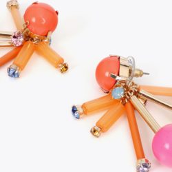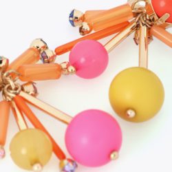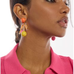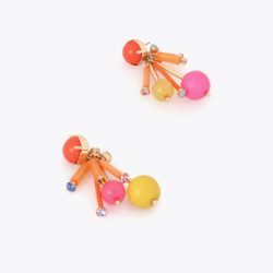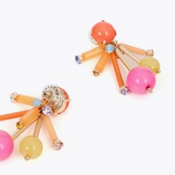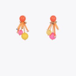 Pendientes alegres y coloridos en diseño acrílico multicolor. Presentan formas esféricas y detalles cristalizados que aportan un toque divertido. Cierre de tuerca para un ajuste seguro.