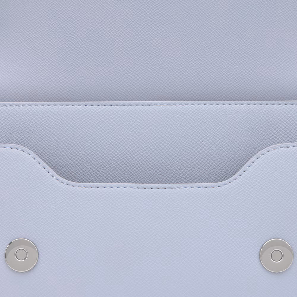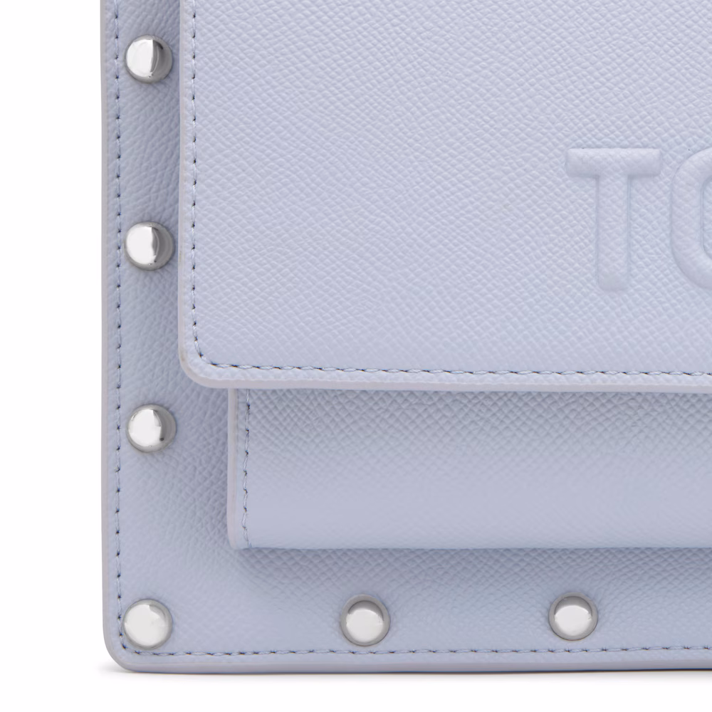 Bolso bandolera mediano Audree TOUS Studs de poliuretano en color azul grisaceo. Incorpora una solapa y cierre con dos botones magnéticos. Cuenta con dos compartimentos separados por uno con cremallera y un bolsillo abierto en la parte delantera. Asa de hombro fija y asa bandolera ajustable y extraíble. Medidas (alto x ancho x fondo): 19 x 25 x 11,5 cm.