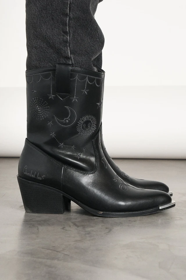-Acabado en punta con detalle de aplique plateada en puntera.
