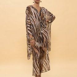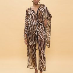 Camisa suelta con un impactante estampado de zebra. Diseño ligero y vaporoso, perfecta para un look atrevido. Presenta cuello en V y mangas amplias, ideal para combinar con pantalones o faldas ajustadas. Detalle de botones al frente.