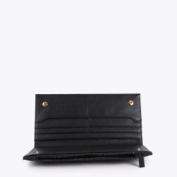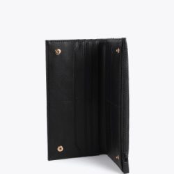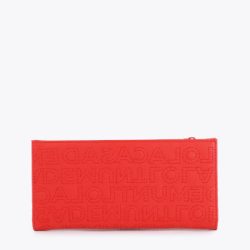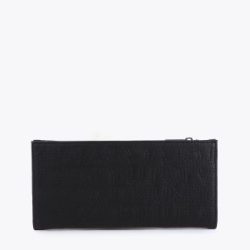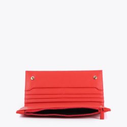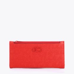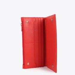 Elegante cartera en efecto piel con pespuntes de logo en relieve. Ofrece múltiples compartimentos y cierre seguro con cremallera. Ideal para organizar tus tarjetas y billetes con estilo.