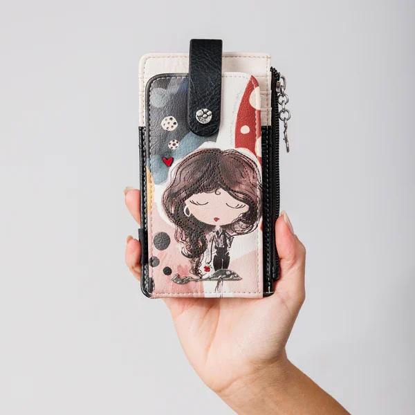 El detalle de las iniciales NC metálicas en el cierre le da un toque distintivo que refleja el carácter exclusivo de la marca. Su tamaño compacto lo convierte en el monedero perfecto para llevar en cualquier bolso, ya sea grande o pequeño, mientras que su diseño sofisticado lo hace ideal para quienes buscan un accesorio que combine con todo tipo de looks.