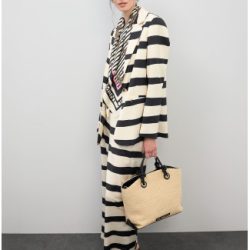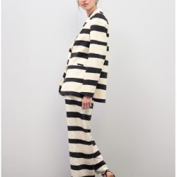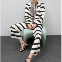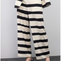 Culotte de corte amplio y detalle satinado con diseño de rayas horizontales en contraste. Confeccionado en tela suave y fluida. Cremallera lateral invisible para un ajuste perfecto y elegante. Ideal para combinar con una blusa o blazer.